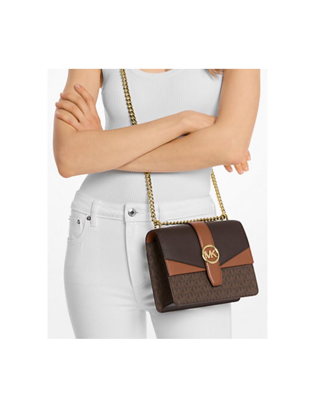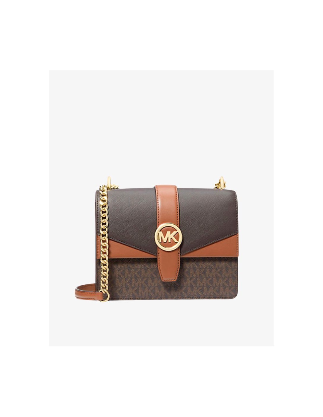 Bolso Michael kors cruzado Greenwich de cuero Saffiano es el toque final definitivo para crear un aspecto pulido. Está diseñado en una silueta estructurada con un elegante cierre de bloqueo de giro y una correa de cadena ajustable en tono dorado: almacena la funda de la tarjeta de su teléfono y las llaves en el interior de bolsillo.