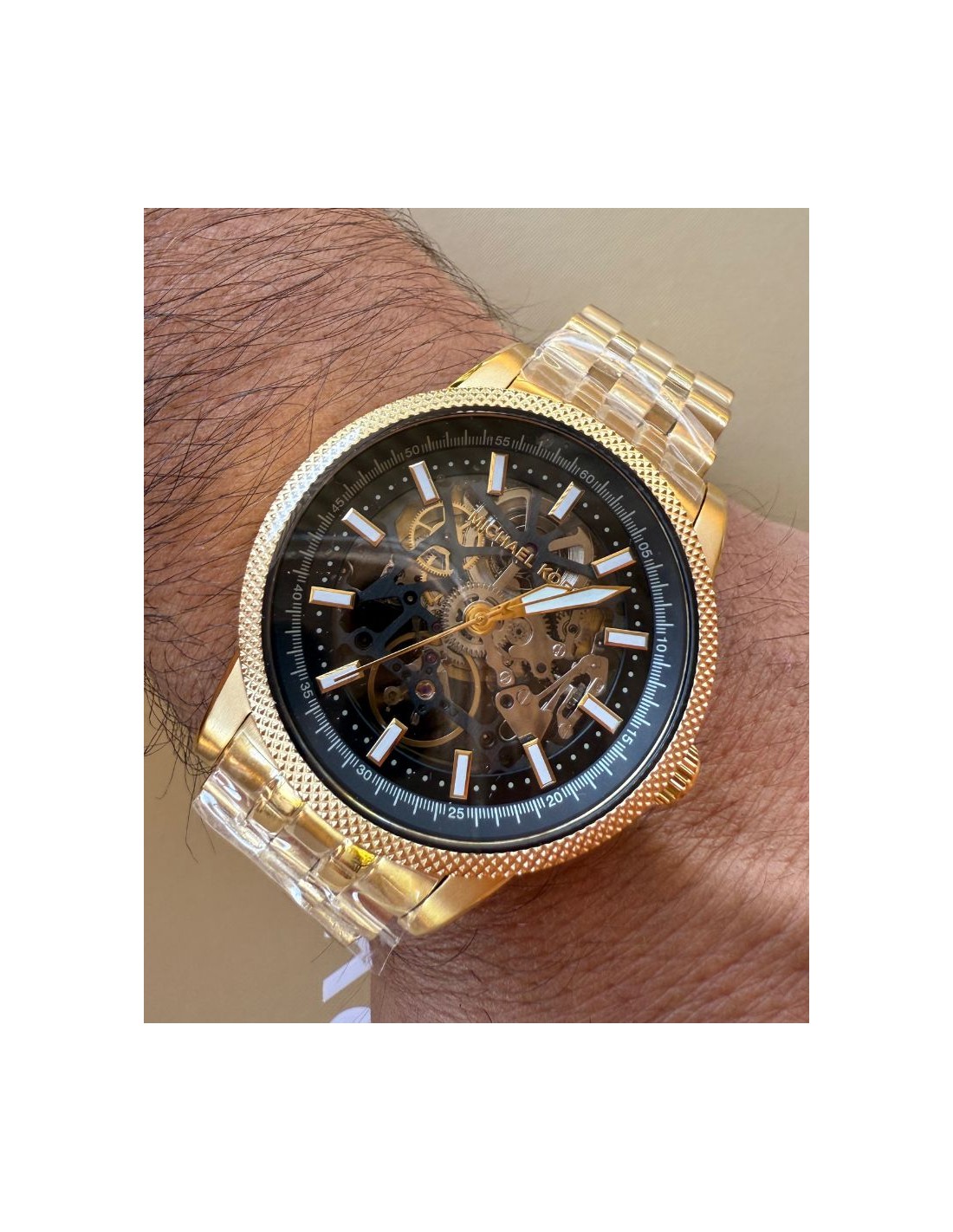 El emblemático reloj Hutton vuelve con un rediseño moderno que incluye una caja esqueleto y un tamaño más grande. La fabricación artesanal en acero inoxidable en tono dorado garantiza que este estilo resistirá el paso del tiempo, mientras que la esfera negra crea un atrevido contraste. Combínalo con conjuntos entallados para un look elegante, o con una chaqueta cazadora de piel y unos jeans para un atuendo para el fin de semana.