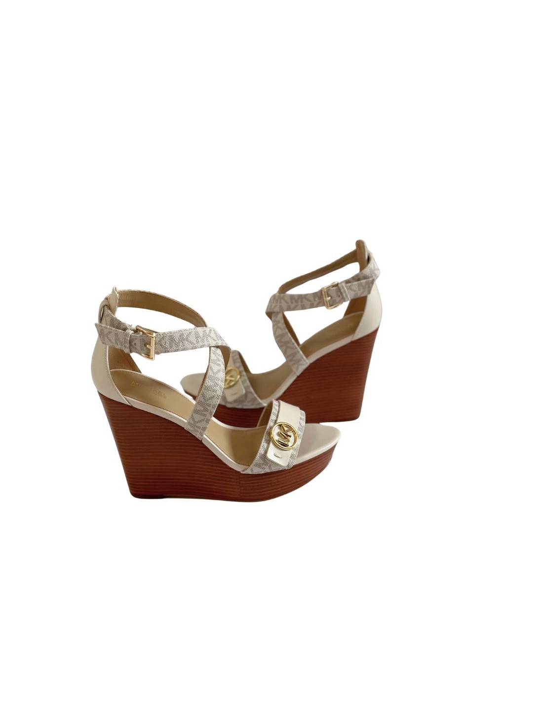 Las sandalias con cuña destacan por su suela de estilo bohemio chic. Además, ofrecen el ajuste perfecto gracias al cierre de tira de piel con nuestro logotipo MK. Combínalas con todo tipo de prendas, desde unos pantalones cortos rasgados hasta un vestido vaporoso de verano.