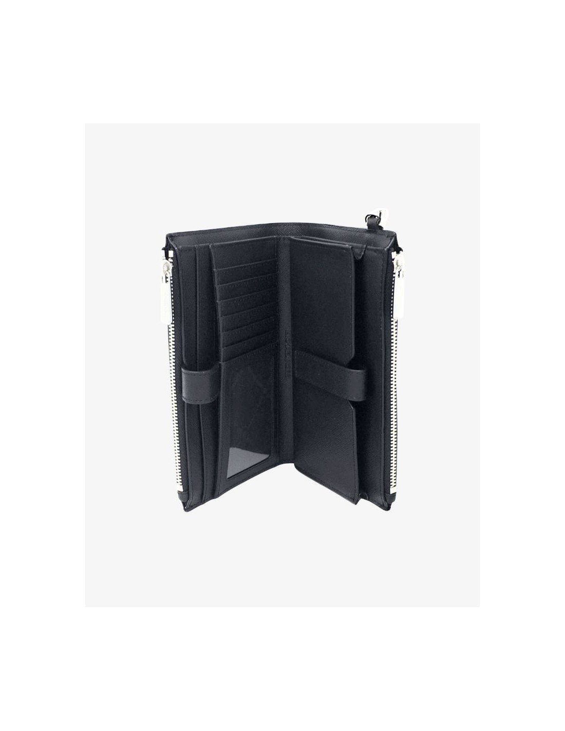 • Detalles interiores: 6 ranuras para tarjetas, compartimento transparente para el documento de identidad, bolsillo para teléfono, 3 bolsillos, 2 compartimentos con cremallera